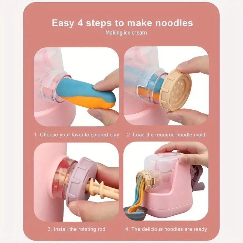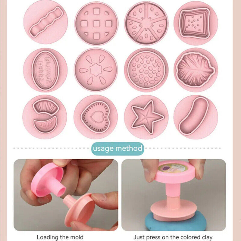 პლასტილინის ნაკრები 12 ფერადი პლასტელინისა და 30 აქსესუარისგან შედგება,