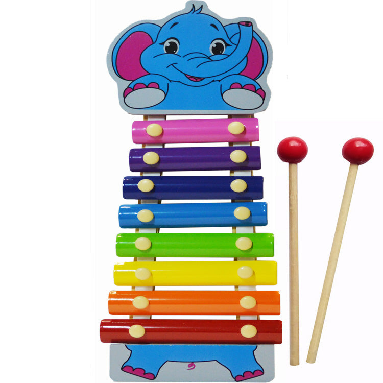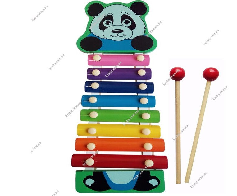 ხის ფერადი ქსილოფონი , აღჭურვილია 8 მუსიკალური ზოლით და არის ჟღერადი